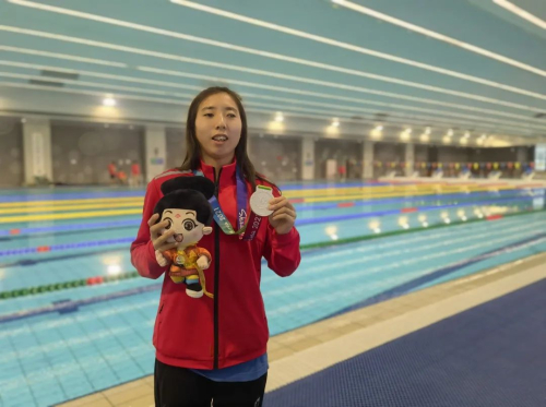 韩佳宝 获得游泳SB11 女子100米蛙泳银牌