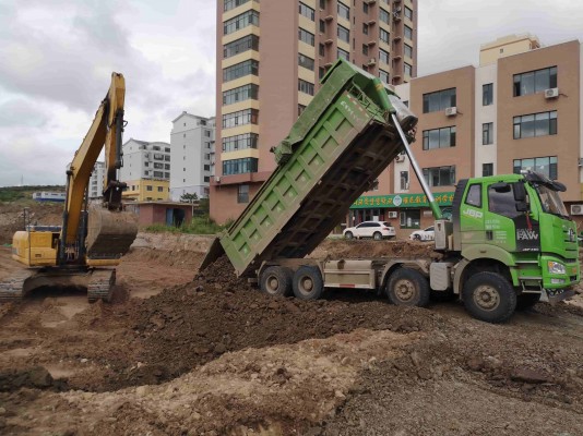 7月13日,记者在该项目工程南段看到,一条宽阔的大路雏形已经出现。道路西侧路面铺设完成,工人们正挥动铁锹清理路面上散落的沙土;东侧,正在铺设路基碎石的运输车、挖掘机、压路机配合默契,运料、铲平、压实一气呵成。延路往北走,左侧边坡已铺设完成,工人们正在整理护坡的泥土……道路建设场面繁忙而有序。