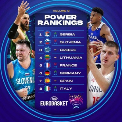 欧锦赛战力榜:塞尔维亚蹿升至第一 斯洛文尼亚&希腊分列二三