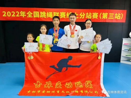 吉林市爱动跳绳训练基地的队员们克服疫情影响,经过赛前长期的刻苦训练,在竞赛中发挥出了顽强拼搏、积极进取的精神,展现了良好的竞技水平,发扬出极佳的团队精神,仲梓豪、刘芯竹、朴智瑛、阚清茹、赵一桐、侯清元、高仟洢、陈媞慧,8名运动员分别在2×30秒双摇接力、30秒单摇跳(双脚轮换跳)、1分钟单摇跳、3分钟单摇跳、30秒间隔交叉单摇跳、4×30秒单摇接力、连续三摇跳等多个项目共获得18枚金牌,3枚铜牌。