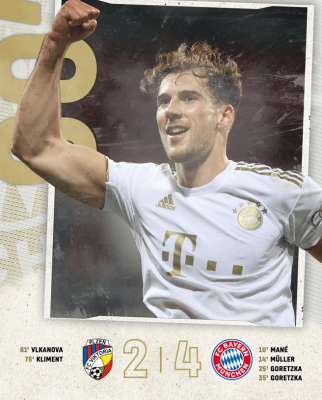北京时间10月13日凌晨3时,欧冠小组赛第4轮打响,拜仁客场挑战比尔森胜利,上半场第9分钟,格雷茨卡助攻马内挑射破门,第13分钟,穆勒门前推射得手,第16分钟,格雷茨卡禁区内完成爆射破门,第34分钟,格雷茨卡单刀破门完成梅开二度;下半场,一度四球领先的拜仁有所松懈,比尔森胜利分别在第62分钟和第73分钟由弗尔卡诺瓦和克里蒙特各扳一球,最终拜仁客场4-2击败比尔森胜利,由于同组的另一场比赛巴萨与国米3-3战平,小组4轮12分的拜仁领先小组第三巴萨8分,提前两轮小组出线!