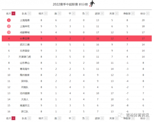 您的当前位置:智慧体育首页 > 看资讯 > 本地新闻 > 中超积分榜长春亚泰紧咬上海双雄 周末主场战中超霸主迎考验