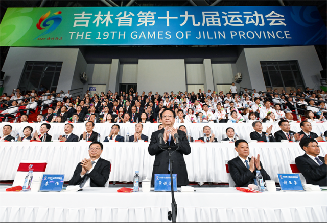 9月8日,吉林省第十九届运动会暨省残运会在梅河口市开幕,省委书记、省人大常委会主任景俊海宣布开幕,省委副书记、省长胡玉亭出席并致辞。邹乃硕 摄
