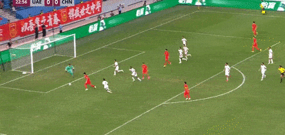 第85分钟,中国U22队右侧传中,阿联酋后卫头球解围失误,胡荷韬将球拿下,将球平扫到门前,后点刚刚替补登场的谢文能铲射,可惜腿到用时方恨短,就差一点点,没能够到皮球。