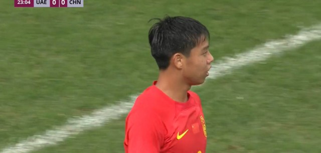第40分钟,梁少文回追时摔倒,好在阿联酋队苏海勒打门被蹇韬倒地扑出,中国U22队逃过一劫。