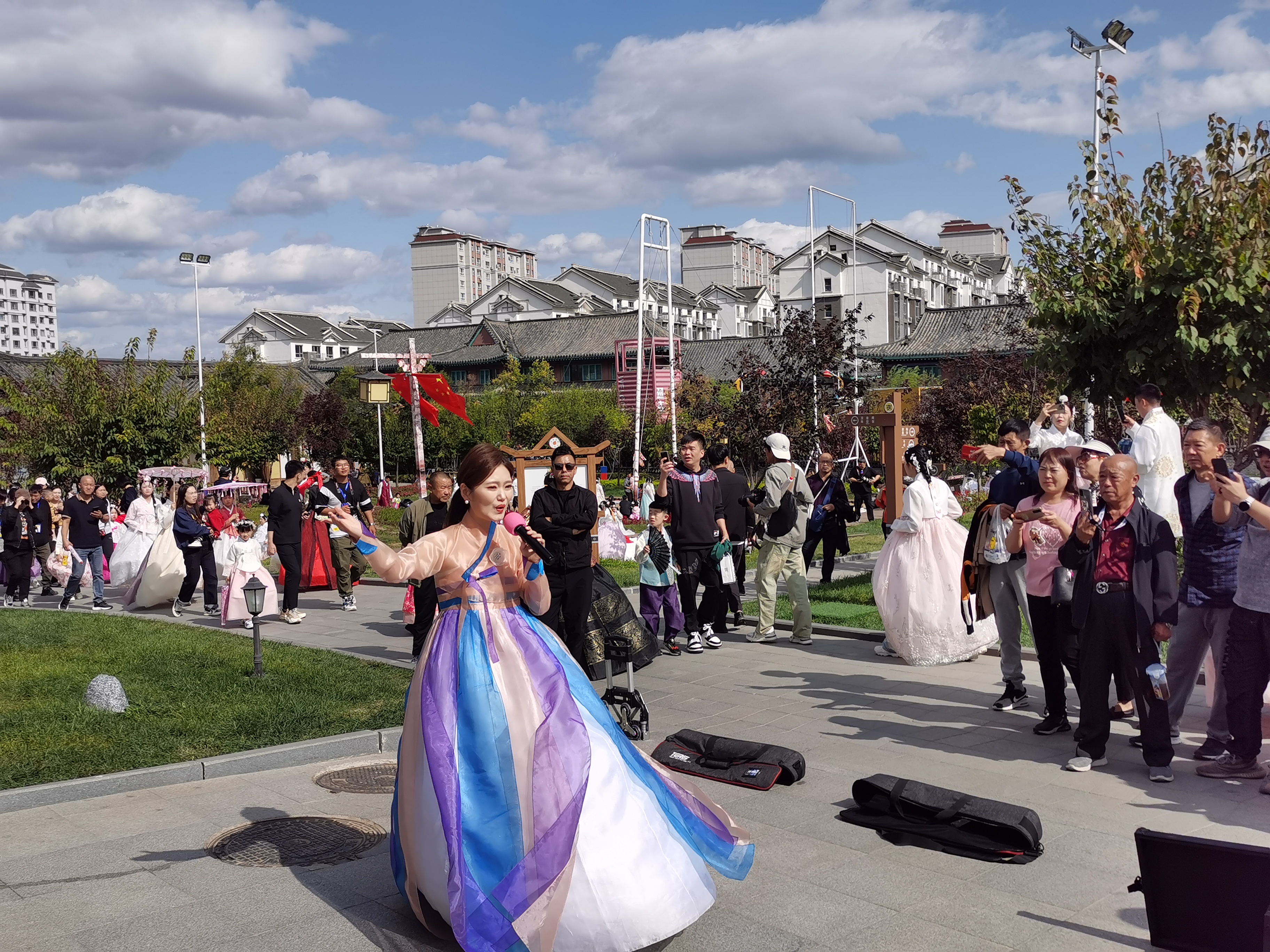 9月30日中午11时,由州文广旅局主办、延边歌舞团承办的“文化漫游·你我同行” ——喜迎国庆延边歌舞团快闪抖音直播活动在中国朝鲜族民俗园拉开了帷幕。延边歌舞团通过在景区直播的方式,将延边歌舞艺术文化传递到来延游客和全国各地的抖音用户面前。