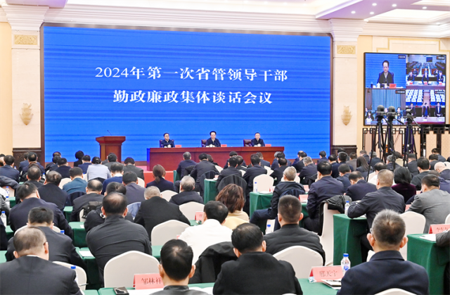 3月25日,2024年第一次省管领导干部勤政廉政集体谈话会议以视频形式召开。省委书记景俊海出席会议并讲话。张野 邹乃硕 摄