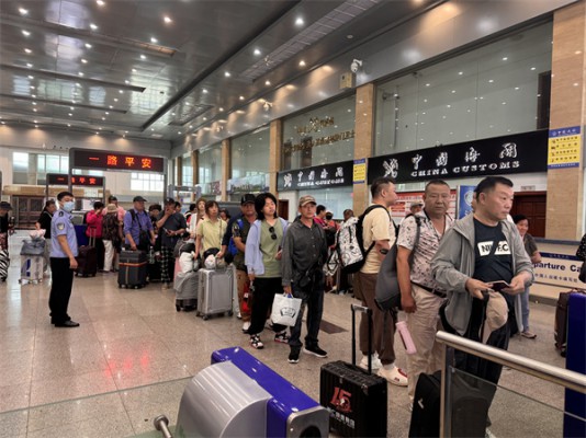 正在出入境大厅执勤的珲春出入境边防检查站执勤二队副队长关宇说,珲春口岸作为吉林省唯一对俄开放的陆路口岸,可直通俄罗斯符拉迪沃斯托克、扎鲁比诺、波谢特等城市,便捷的交通条件为跨境旅游提供了极大的便利。随着旅游热度的持续攀升,越来越多的国内外游客看好珲春口岸通关手续办理便捷、出境游玩周期合理、费用实惠等优势,选择通过珲春口岸出入境。他还说:“为进一步优化出入境游客的通关体验,珲春口岸旅检通关服务时间延长了2小时,并开启了周日无休息通关模式,这也为跨境旅游提供了极大的便利。”