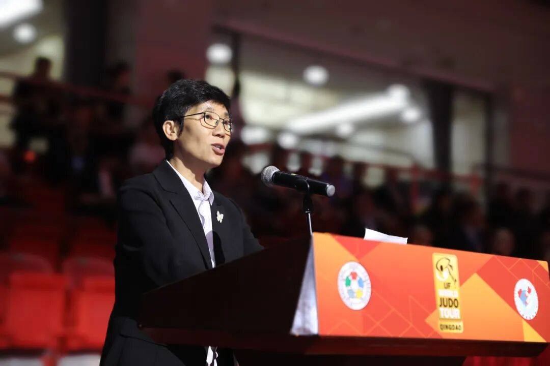 山东省体育局局长乔云萍致欢迎辞,她表示,山东体育始终坚持以习近平新时代中国特色社会主义思想为指导,锚定“走在前 挑大梁”,加快建设体育强省。山东是柔道人才的培养大省,青岛以 “柔道名城”著称,培养出李淑芳、刘霞、于颂、马振昭等多名柔道好手,在奥运会、世锦赛上屡获佳绩。欢迎来自世界各地的朋友们在比赛之余,多在青岛这座美丽的城市走走看看,享受“红瓦绿树、碧海蓝天”的美丽景色,体验“齐风鲁韵、开放包容”的文化魅力,共赴一场山海之约!