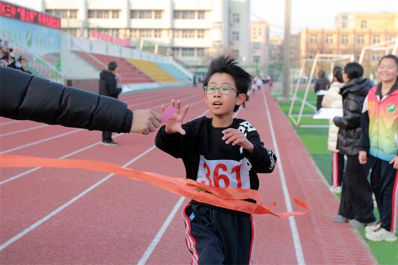 张志永校长为比赛鸣响第一枪,发令声划破晴空,参赛选手如离弦之箭,奋力冲出起跑线,一场速度与耐力、意志与激情的较量热烈展开。运动员们不畏冬寒,顽强拼搏,尽显昂扬斗志与青春活力;跑道外,师生组成的拉拉队呐喊助威声此起彼伏,汇成一股驱散寒意的暖流,点燃了整个校园的热情。当最后一名选手喘着粗气冲过终点线时,看台上响起经久不息的掌声。这或许就是体育教育的魅力——它教会孩子们如何在逆境中寻找力量,在汗水中收获成长。