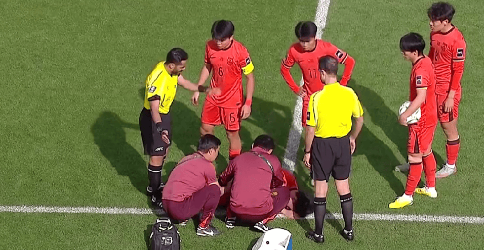 截止至比赛的前25分钟,中国队一共1脚打门,泰国队4脚,中国队控球率41%,泰国队59%。第38分钟,泰国队获得一次角球机会,前点被泰国队员抢到,幸亏门将李昊的一次“神扑”,否则的话,中国队就丢球了。
