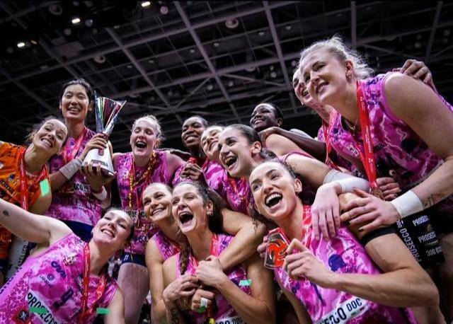 随着主裁判的一声哨响,科内利亚诺女排在都灵狂欢,她们成功捧起了奖杯。朱婷与队友们相拥庆祝,享受着胜利带来的喜悦。这个冠军不仅是对球队整个赛季备战的肯定,也为球队后续的联赛和欧战征程注入了强大的信心。对于朱婷而言,这座意杯冠军只是一个开始,人们有理由期待她在接下来的赛季中,带领这支王者之师向更多的荣誉发起冲击,继续书写属于她的排球传奇。