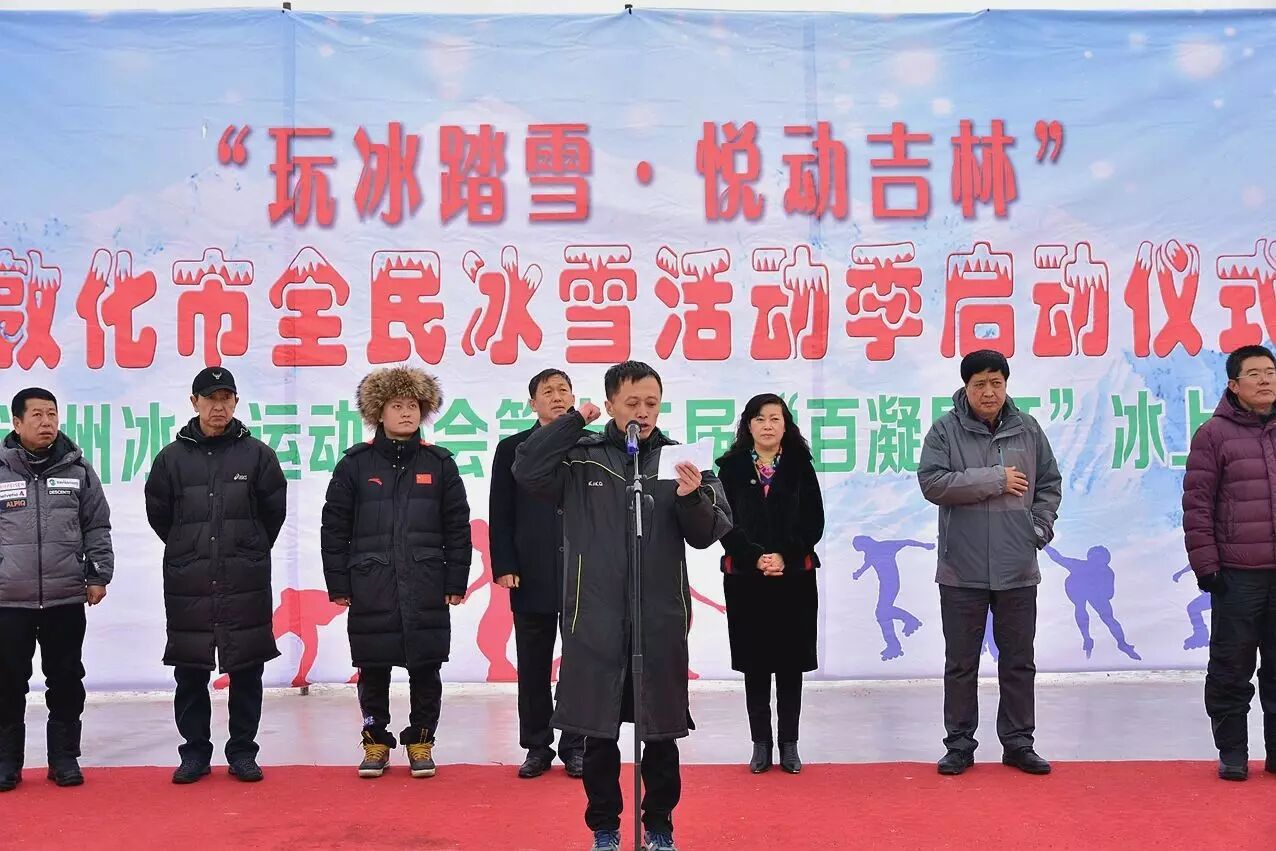 12月18日,由延边州冰上运动协会主办,敦化市文广新局、体育总会、冰轮协会承办的“悦动吉林、燃情冰雪,同心共筑中国梦” 敦化市全民冰雪活动季启动仪式暨延边州冰协第十三届冰上运动会隆重举行。