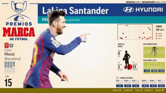 又一年,“梅老五”成为了自己球队中制造进球最多的球员。本赛季,梅西以15球位列射手榜首位,还有10次助攻位列助攻榜首位,而今年他在西甲打入34球,也是进球最多的。